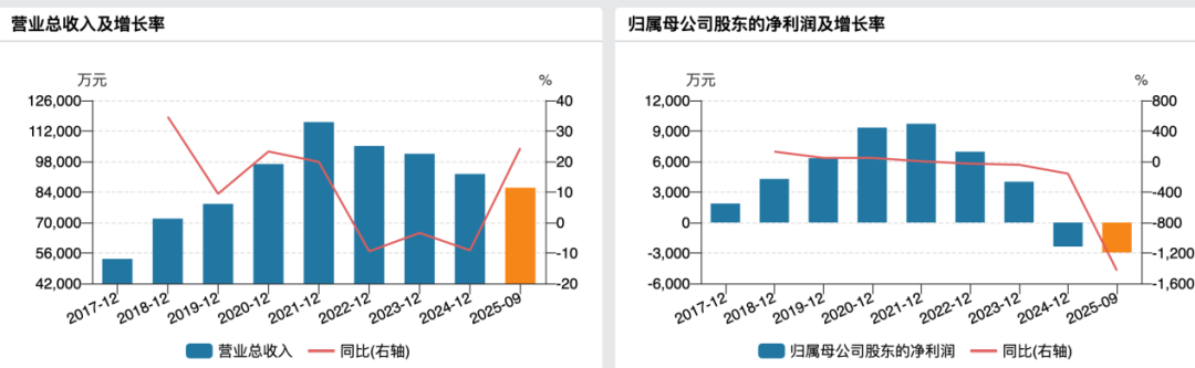 从业绩来看,“二代接班”后的嘉亨家化表现并不理想。2025年前三季度,嘉亨家化实现营收8.6亿元,同比增长24.42%;净利润亏损2950.05万元,同比暴跌1430.74%。拉长时间来看,这是公司近五年来前三季度归母净利润首次亏损。